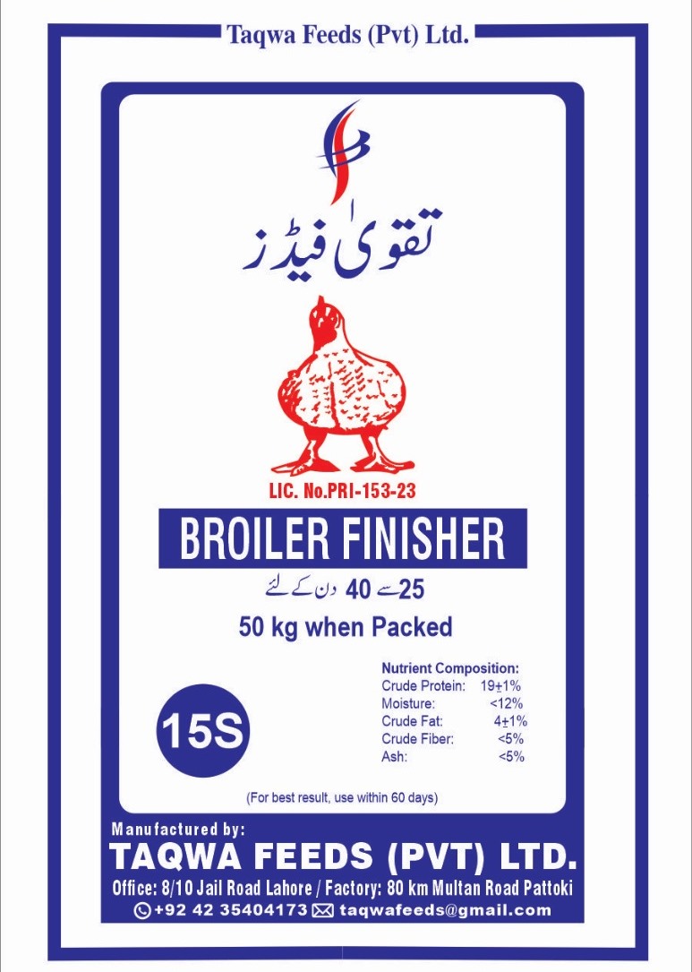 Broiler finisher ration is used from 35th day to onward when feed intake and energy requirement is at higher side and protein requirement is less. Generally birds are shifted to finisher diet when their weights range from 2000g to 2200g. This ration is recommended up to 3000g to 3500g weight gain.